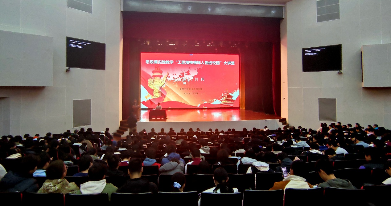 为弘扬劳动光荣、技能宝贵、创造伟大的时代风尚,此次实践周推出了“工匠精神榜样人物进校园”系列活动。来自行业一线的劳动模范、知名工匠们走进校园,与师生零距离互动。11月7日,来自中车长江车辆有限公司的付兵工程师开讲。付兵老师以质朴的语言、鲜活的事例,分享了在岗位上追求卓越、攻坚克难、无私奉献的奋斗故事。在互动环节,同学们踊跃提问,就职业规划、技术瓶颈、人生选择等与榜样深入交流。这场报告会,为青年学子树立了鲜明的人生坐标,激励他们走实技能成才、技能报国之路。