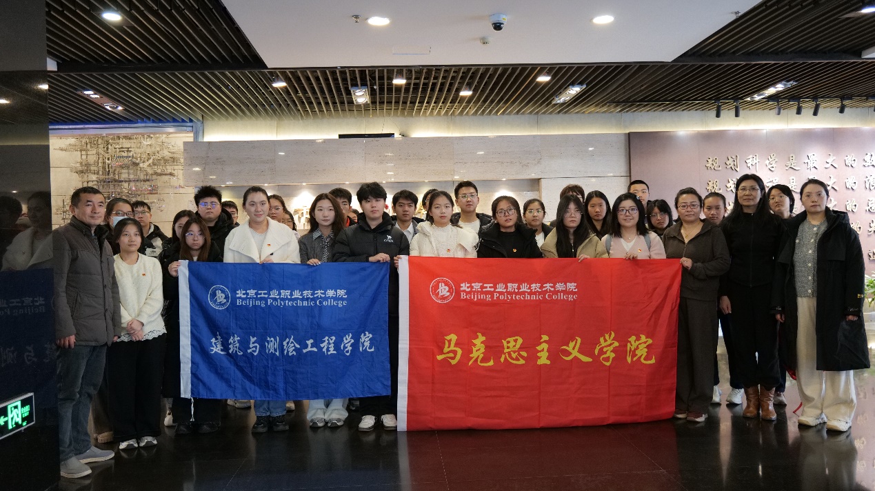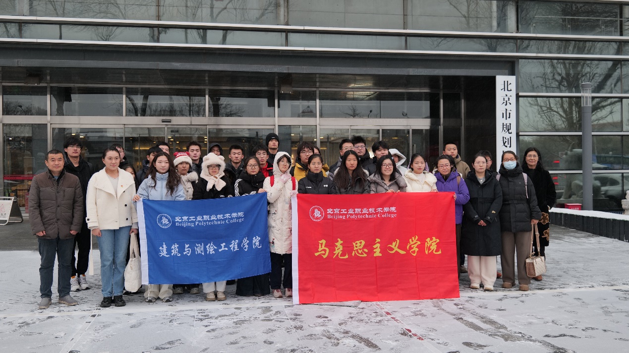 为学习贯彻党的二十届四中全会精神,深入认识科学规划的重要作用,了解“十五五”时期北京的规划布局,增强青年学子的大局意识和实践能力,2025 年 12月 12日,北京工业职业技术学院马克思主义学院的思政课教师团队带领40余名学生走进北京市规划展览馆,携手建筑与测绘工程学院工程测量、无人机测绘教研室和智能建造教研室的师生代表,开展了一场以“追溯发展脉络,展望宏伟蓝图”为主题的实践教学活动。