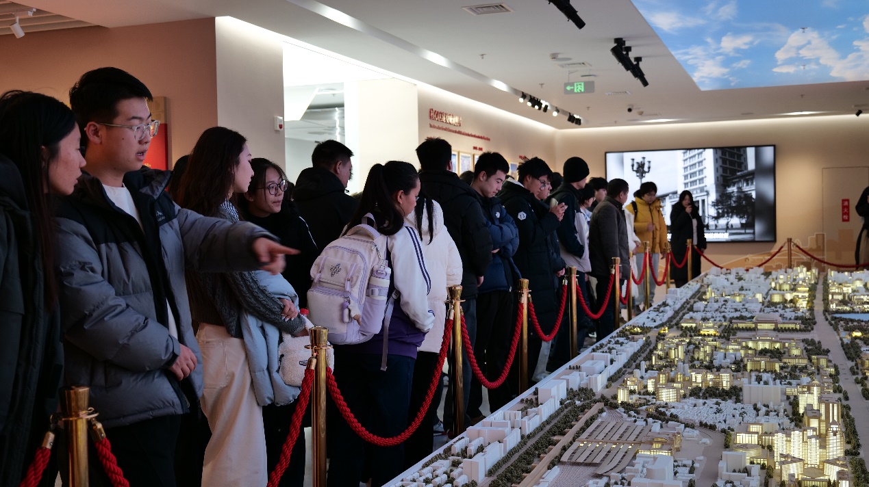 在《首都功能核心区控制性详细规划(街区层面)(2018年—2035年)》实施成果展区,师生们通过动态数据与鲜活案例,系统了解首都功能持续优化、老城保护与民生改善协同推进的生动实践。展陈内容清晰展现出一条贯穿古今的城市治理逻辑:让古都巍峨焕彩新生,不仅在于风貌留存,更在于功能重组与活力再造;将老城保护视作民生重任,在保护中更新、在传承中发展,使历史空间融入现代生活;最终实现“本固邦宁”的城市理想。讲解员的细致解读,把展板上的文字、地图变成了理解“新思想”的具象化答案。