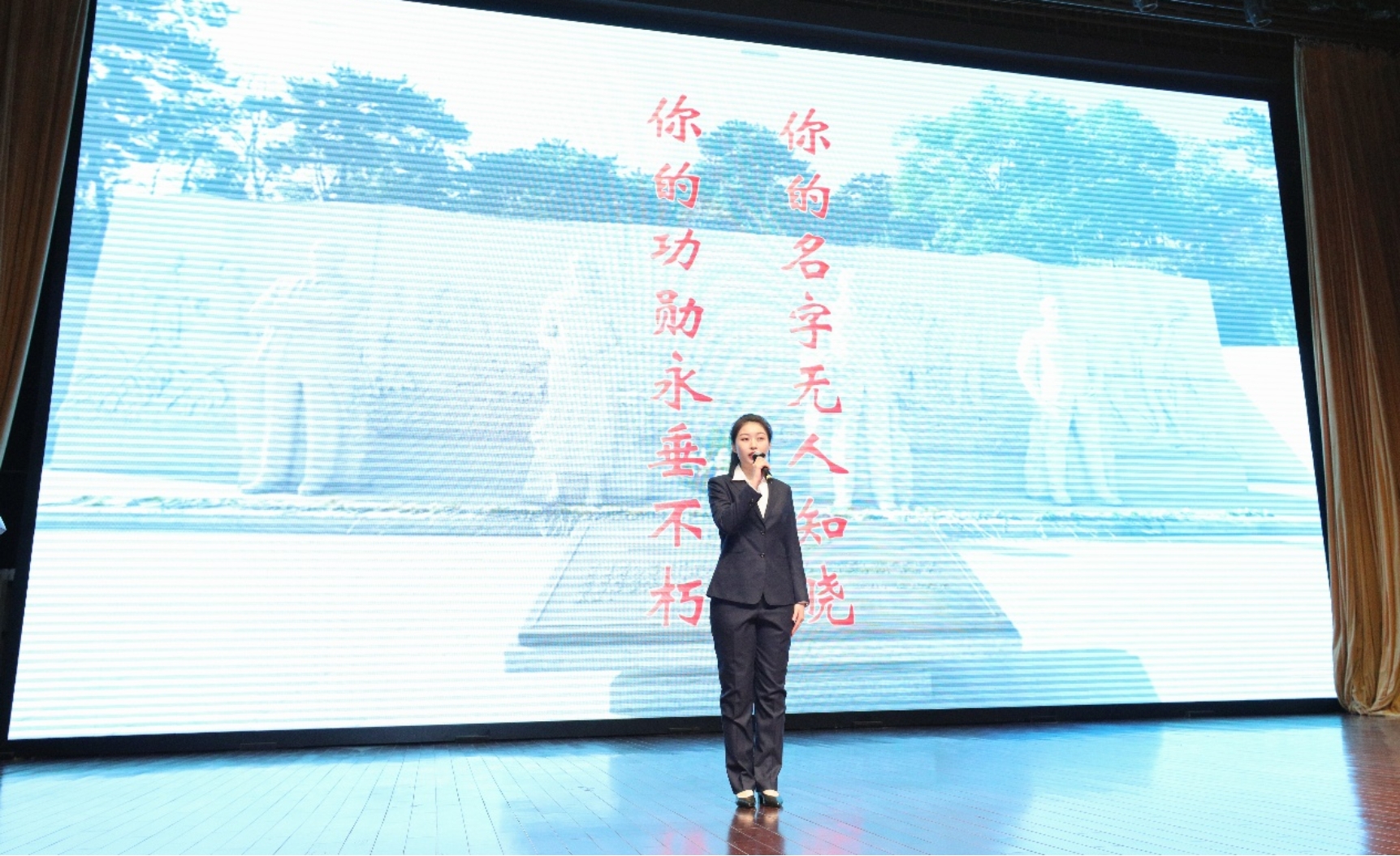 “作为新时代青年,我们不能忘记这段苦难而光辉的历史,要传承先辈的爱国精神与奋斗意志。今后,我将以先辈为榜样,坚定信念、脚踏实地,用知识武装自己,用行动肩负使命,为祖国的繁荣富强贡献微薄之力,让英雄精神照亮前行之路。”